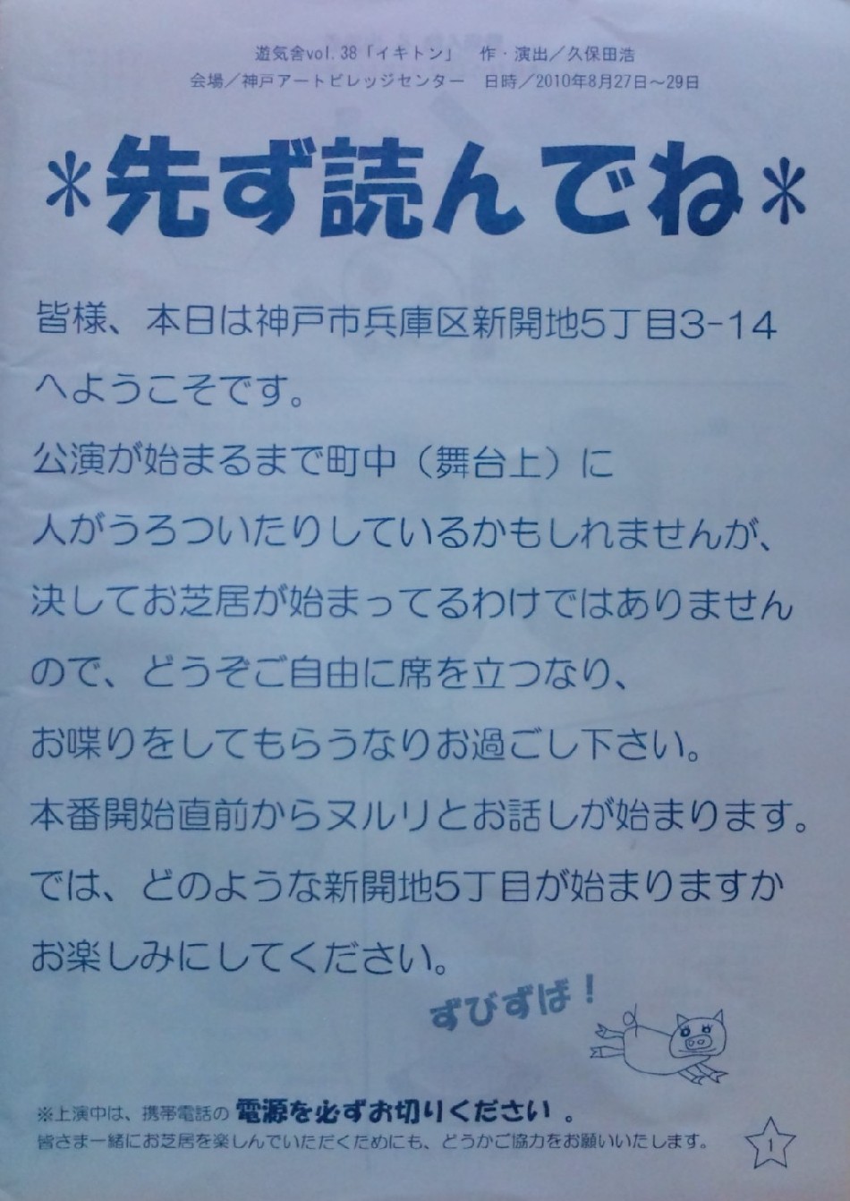 遊気舎さんの公演「イキトン」を観に神戸アートビレッジセンターに行ってきた。
