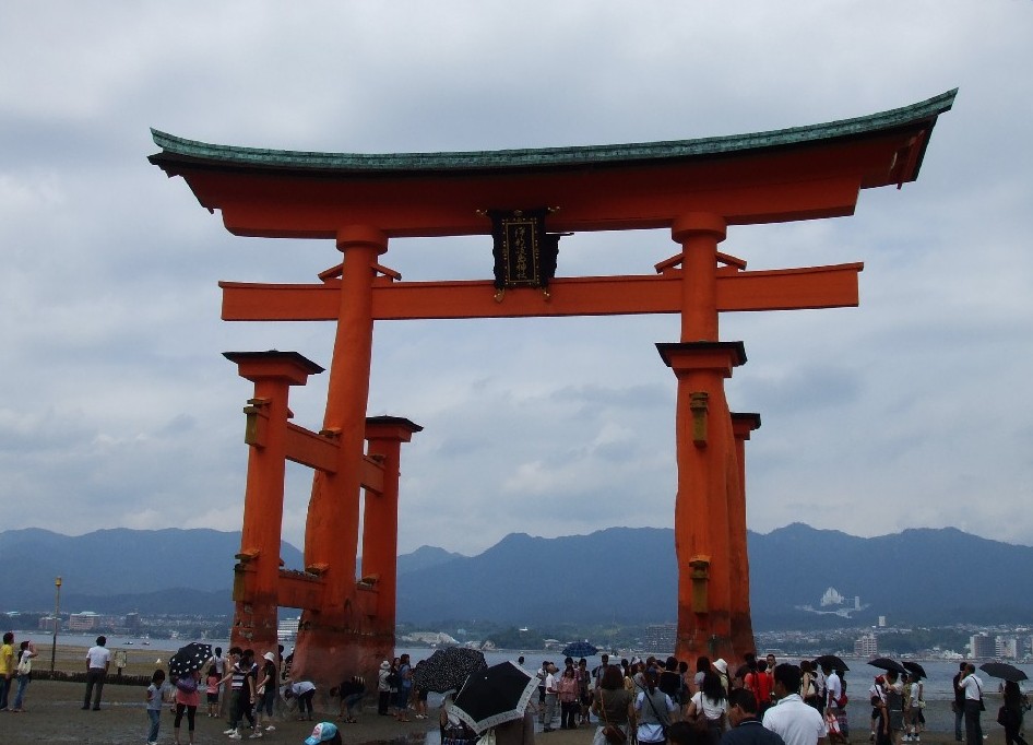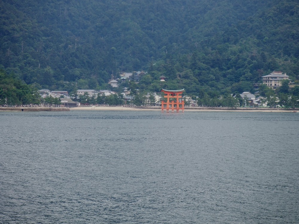 本州へ向かう船に乗り、ふと大鳥居の方に目をやると、