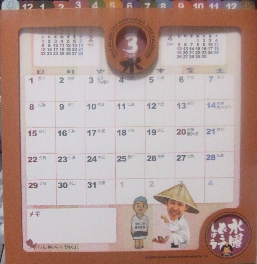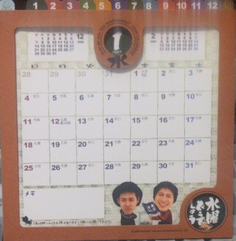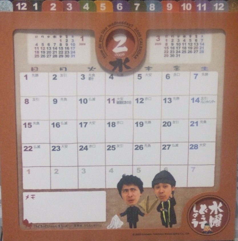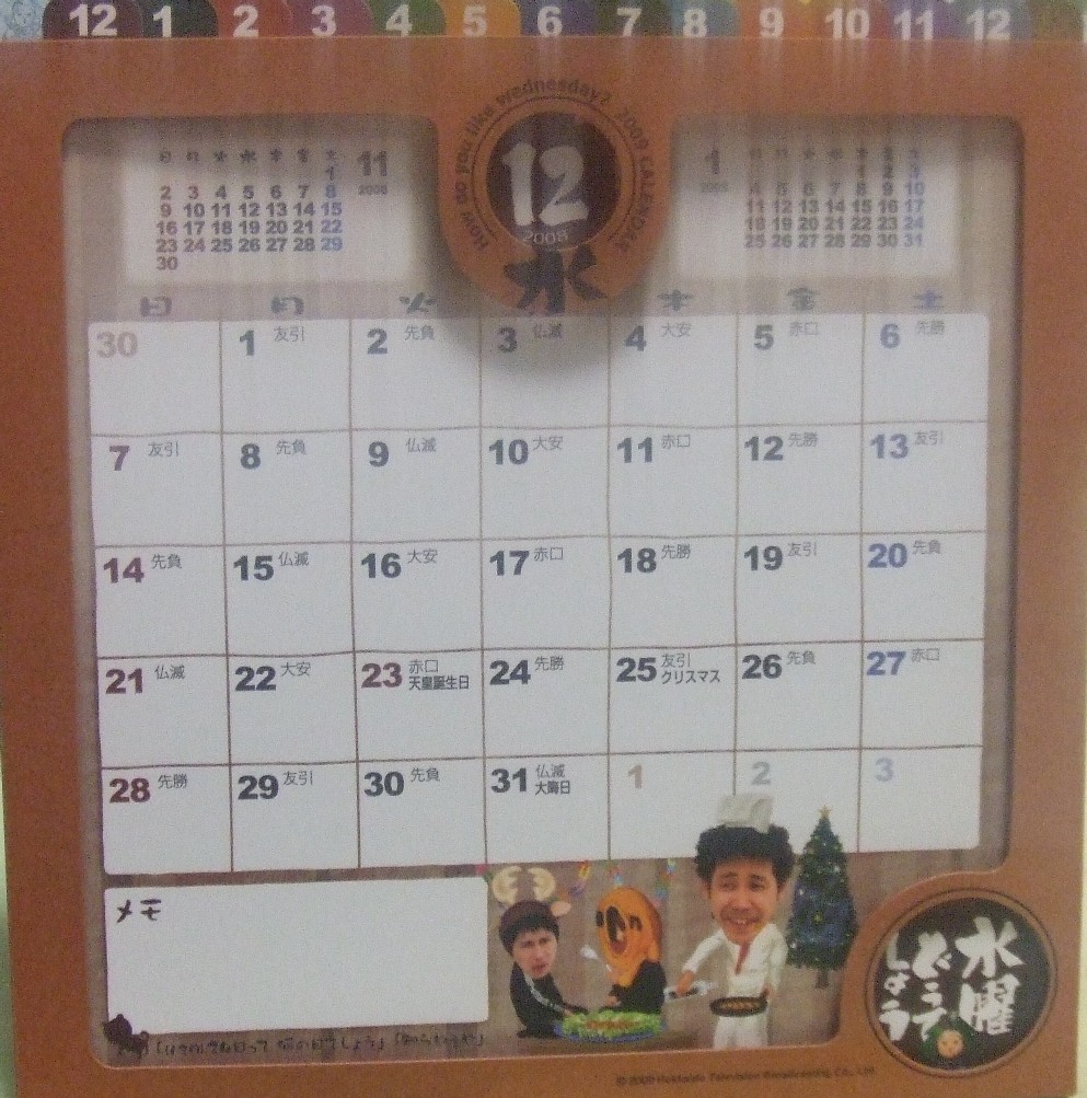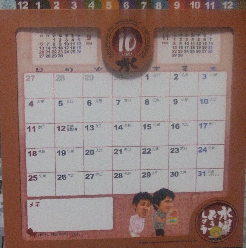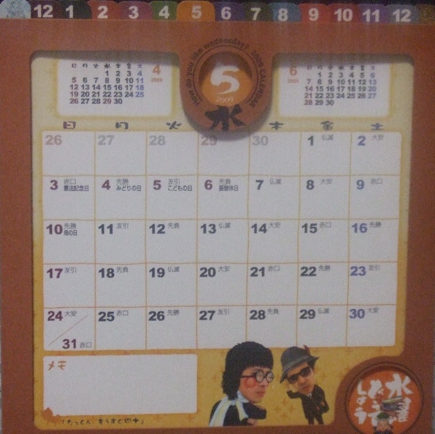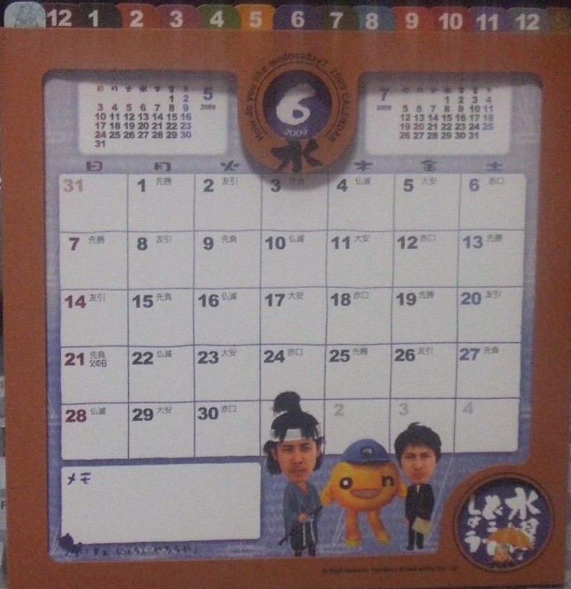 今年はどうでしょうさんのカレンダーも国民にとってはいい月が真ん中あたりに有