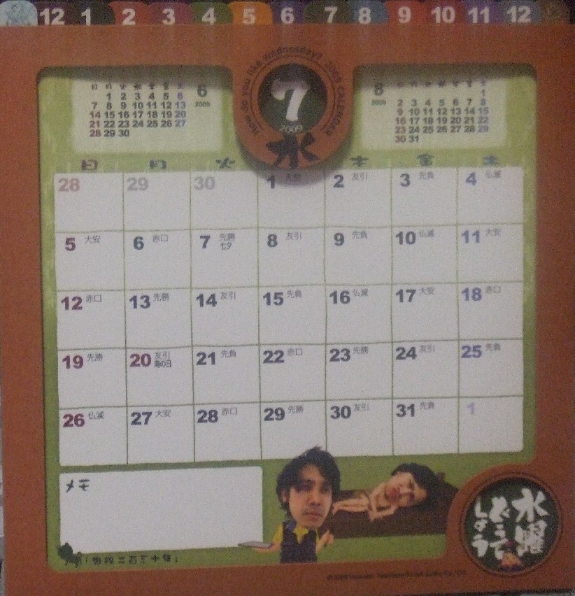 仕様も08年より使いやすく、足もしっかりしてるし、前月来月が上部にあり見やすい!(今年のはデスクにおいているとキーボードに隠れて見にくかったのです、しかも来月来々月分表示)。シールもより使いやすそうなラインナップ。と出来上がり上々。今年の12月からあるので早速マイデスクに飾って実用化です!